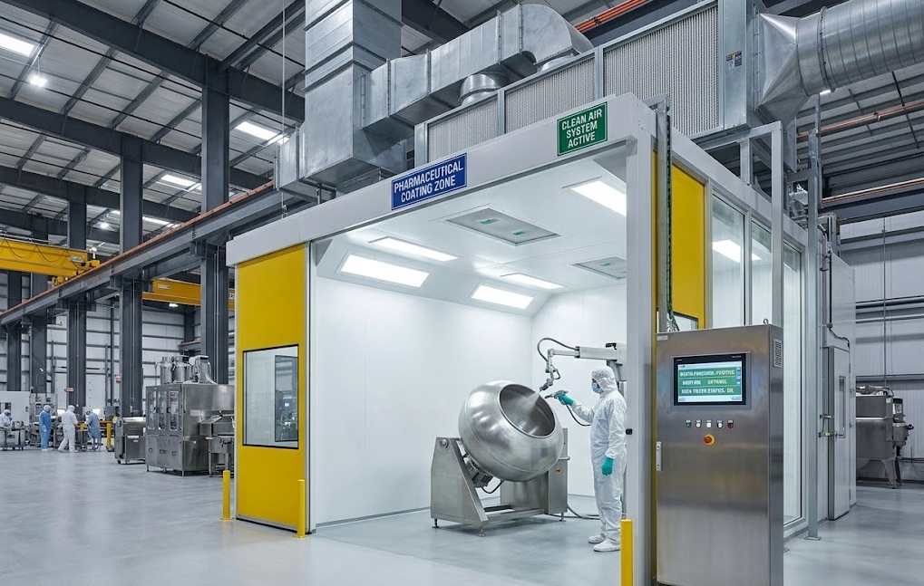 Contamination Risks in Pharma Equipment Coating — How Paint Booth Design Ensures Clean and Compliant Finishes