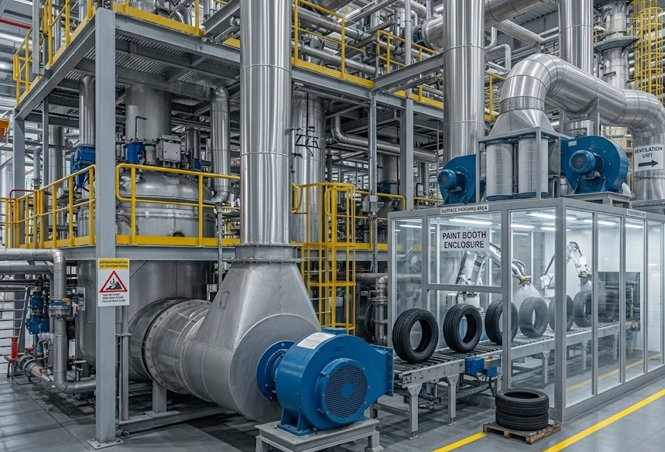 Surface Finishing in Rubber and Tyre Plants — Why Paint Booth Ventilation Is Key to Consistent Quality